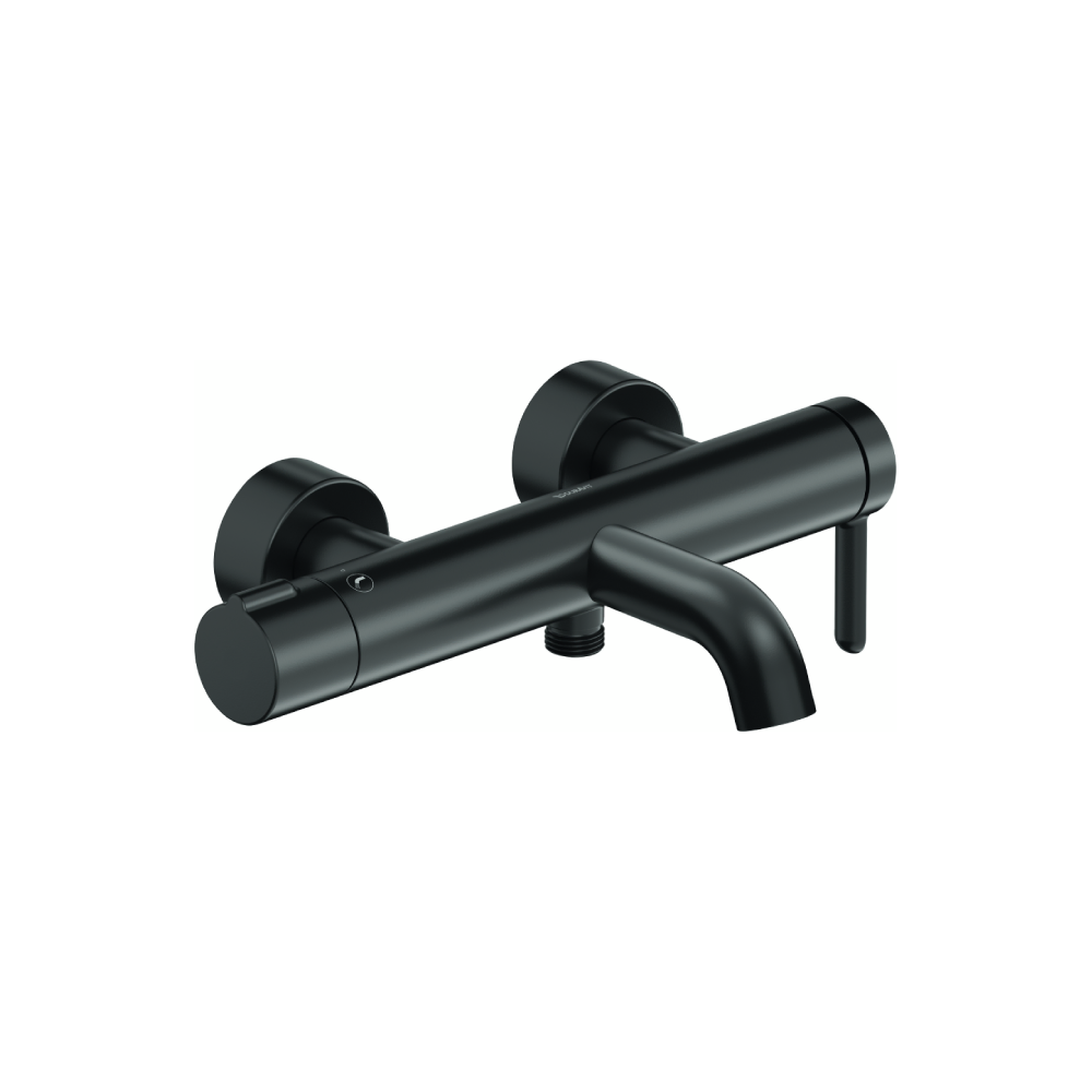 خلاط حوض استحمام/دش من ديورافيت بروز فوهة الخلاط ١٠.٩ سم مع منفذين للماء - أسود مطفي خلاطات الحمام