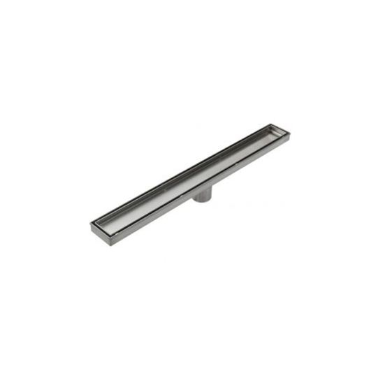 Aquanox recessed linear shower drain (600mm) with straight edge. Durable brushed stainless steel, 50mm outlet, and integrated trap.