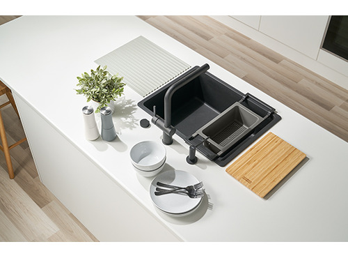 - حجر صلب عالي الجودة وتصميم بسيط ورف فوط متكامل ، كل شيء في حوض واحد