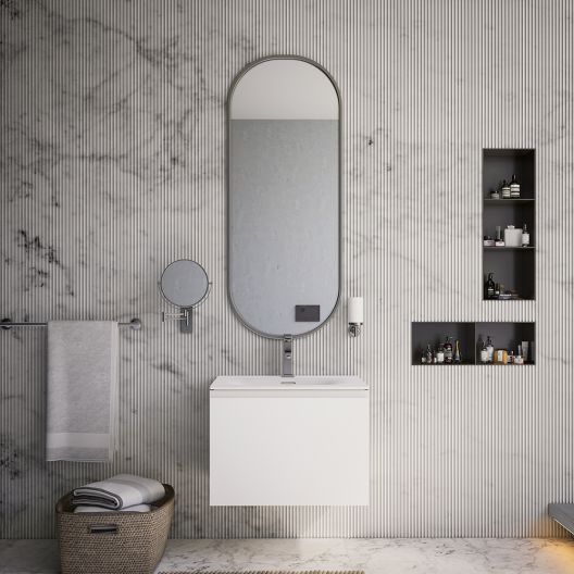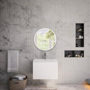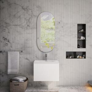 - تتوفر وحدة حوض الحمام باللون الأبيض اللامع أو هيكل البلوط أو الرمادي مع لمسة نهائية ناعمة غير لامعة