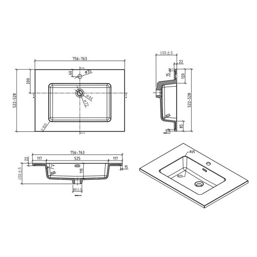 - الحجم: 76.3 (عرض) × 52.8 (عمق) × 16 (ارتفاع) سم