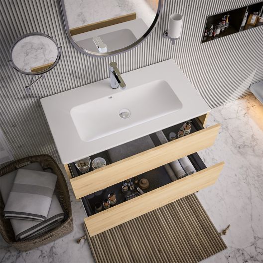 1 x طقم خزانة حمام 76 سم (عرض) بلوط طبيعي مع مغسلة من برنستين