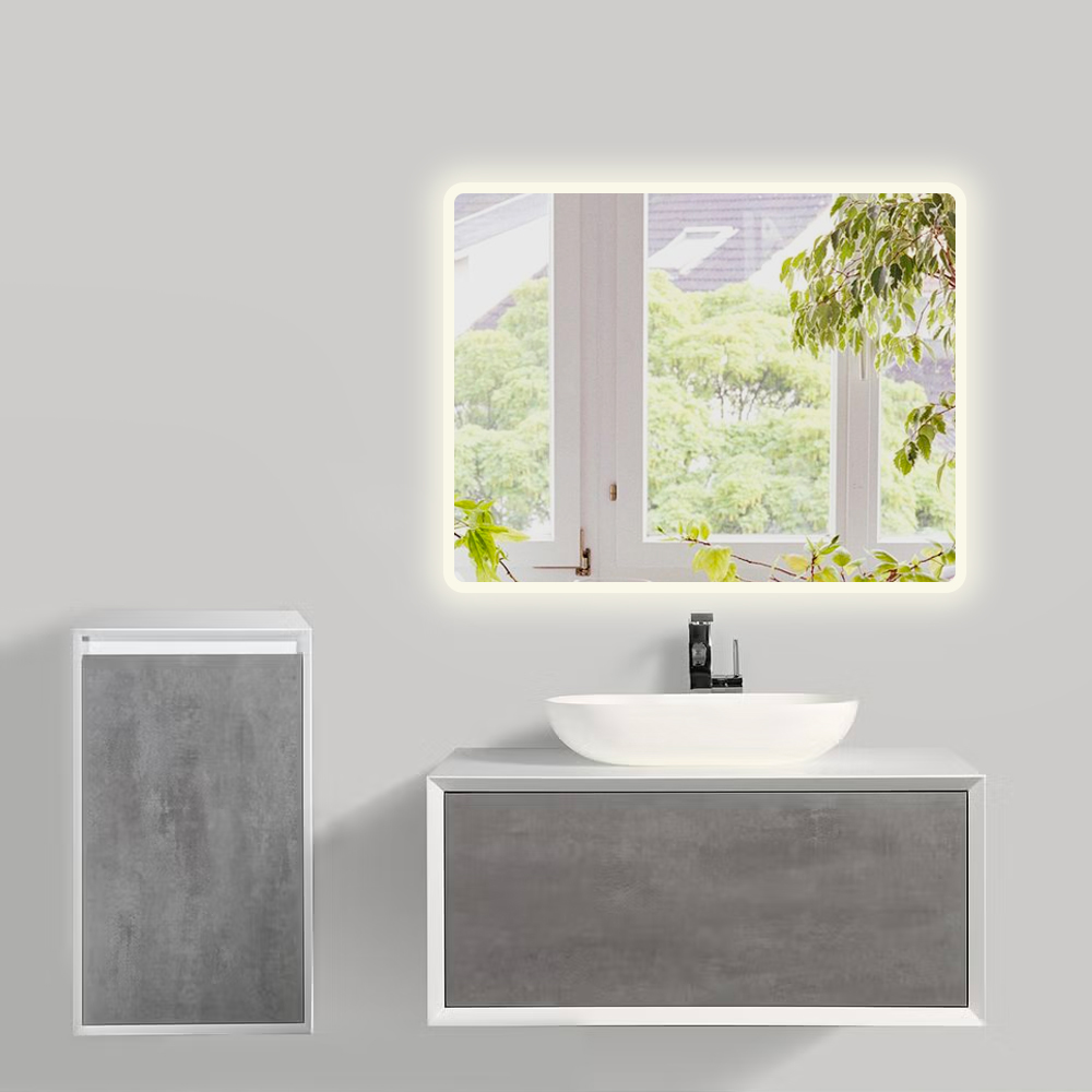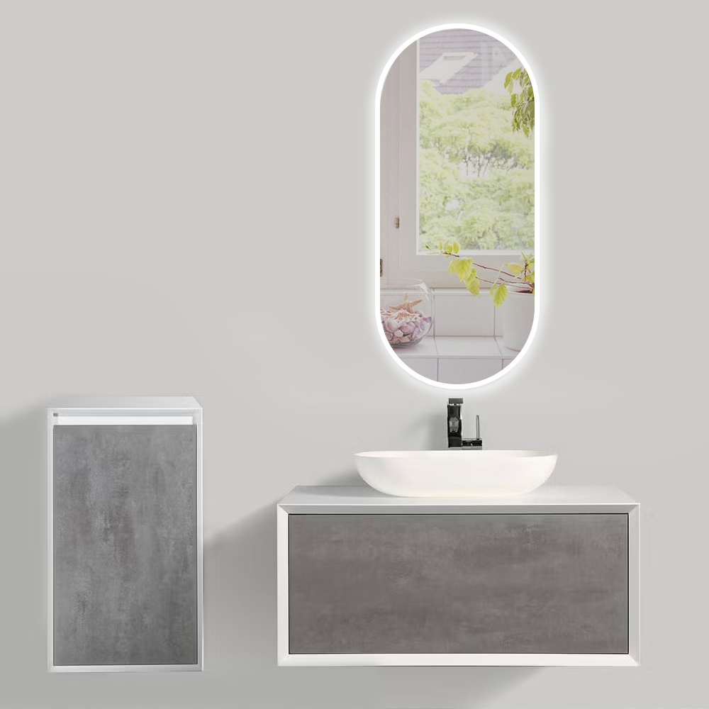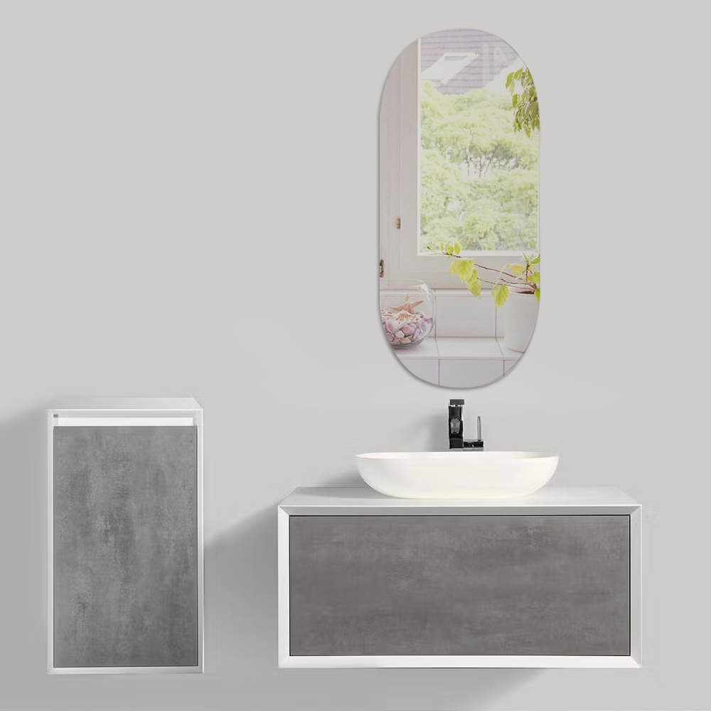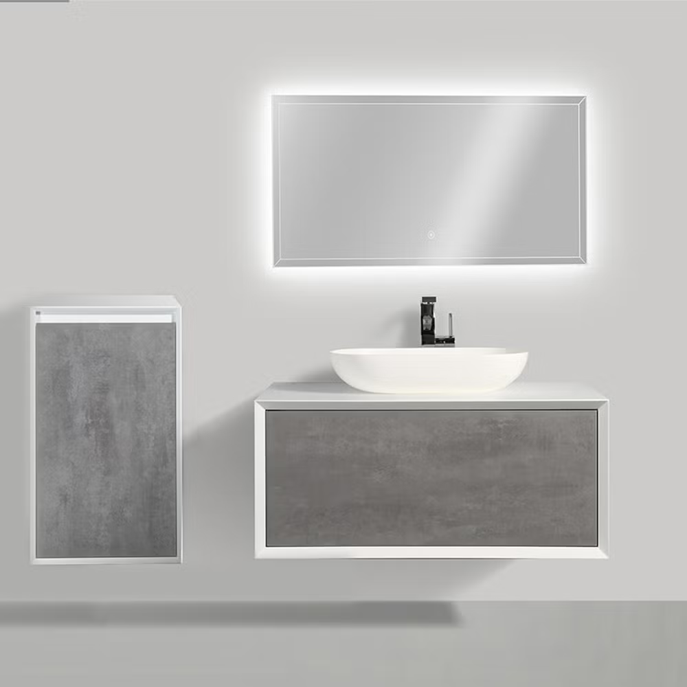 طقم خزانة حمام مع مغسلة من برنستين ٩٠(عرض) × ٥٥(عمق) سم - خرساني رمادي مطفي أثاث الحمام