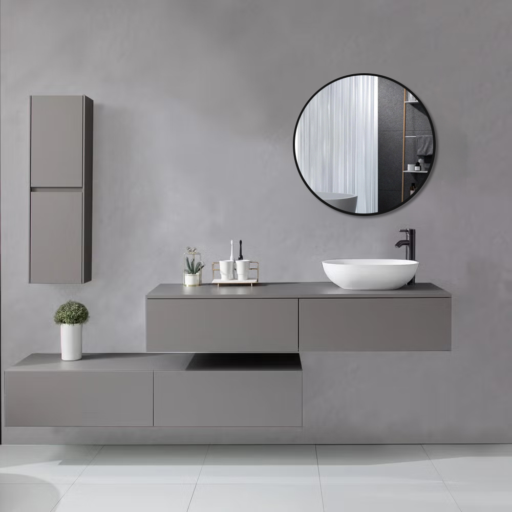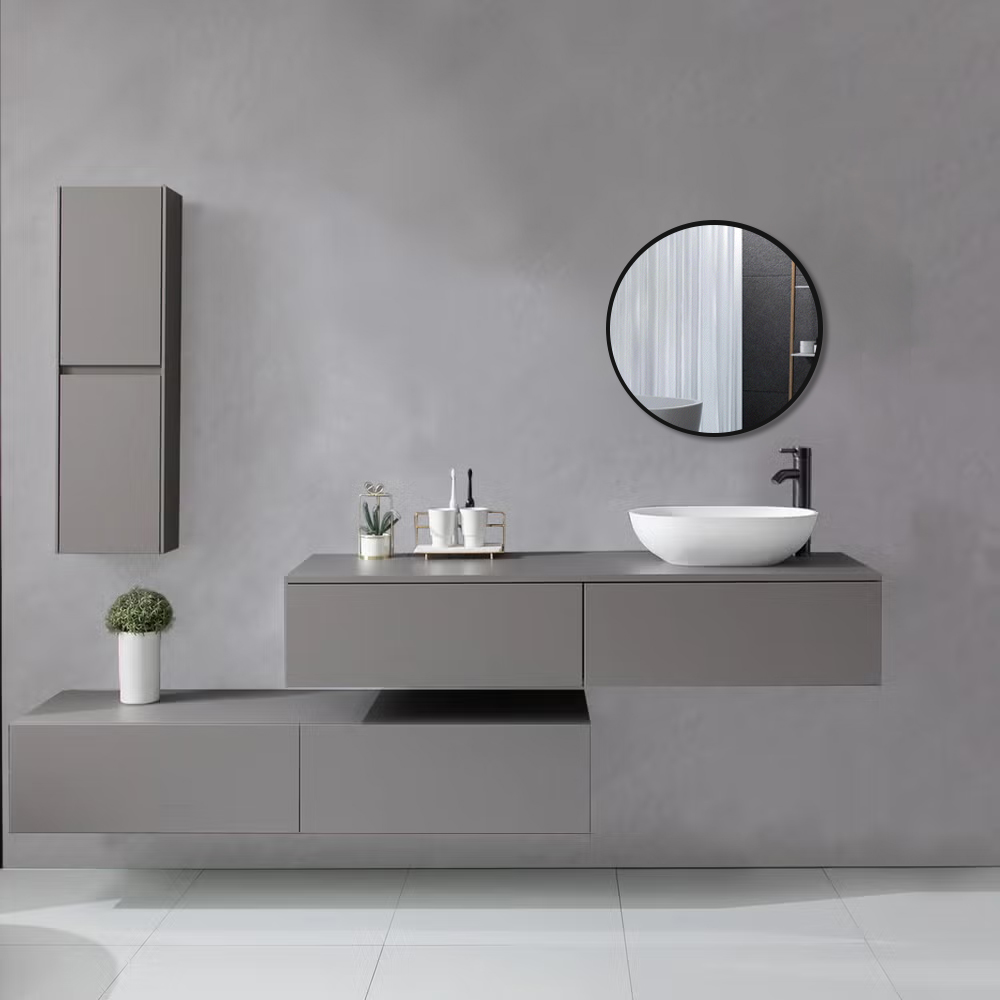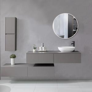 طقم خزانة حمام المزدوجة مع مغسلة من برنستين ١٥٠(عرض) × ٤٨(عمق) سم - رمادي مطفي أثاث الحمام