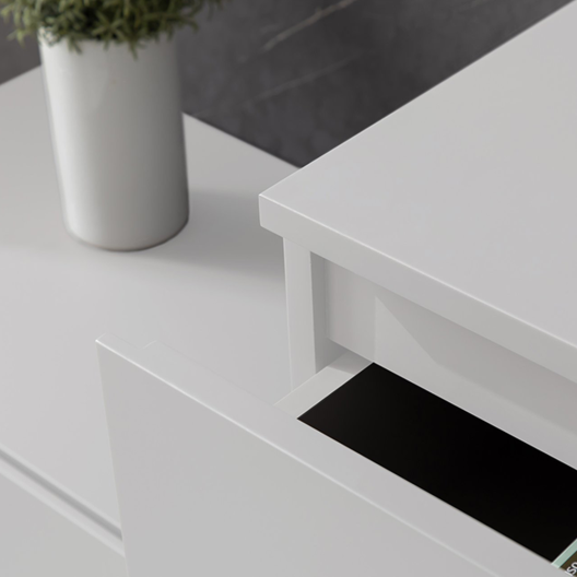 - الأدراج مزودة بتقنية الإغلاق الناعم