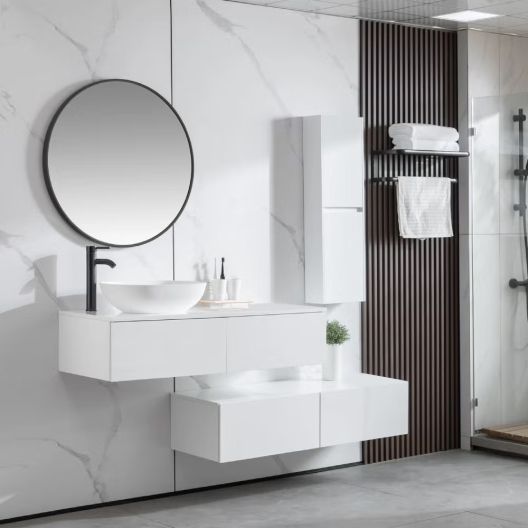 - توفر كل خزانة حمام درجين واسعين لزيادة مساحة تخزين الحمام