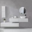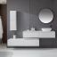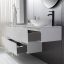 - تتوفر وحدة حوض الحمام المُجمَّعة مسبقًا باللون الأبيض غير اللامع أو هيكل البلوط أو الرمادي مع لمسة نهائية ناعمة غير لامعة