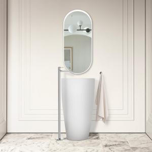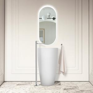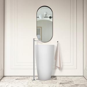 مغسلة قائمة علي الأرض من برنستين: 50 (عرض) × 50 (عمق) × 90 (ارتفاع) سم. هذه المغسلة الفريدة ذو الشكل المخروطي مصنوعة من الحجر الصلب عالي الجودة باللون الأبيض المطفي.تشمل غطاء هراب المغسلة،وسدادة المغسلة ومجموعة التثبيت. التركيب الاختياري متاح من الفنيين.