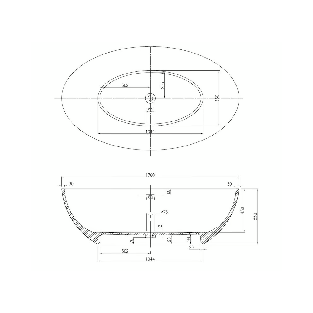 1 x حوض استحمام يثبت على الارض من الحجر الصلب 176 (طول) × 103 (عرض) سم من برنستين