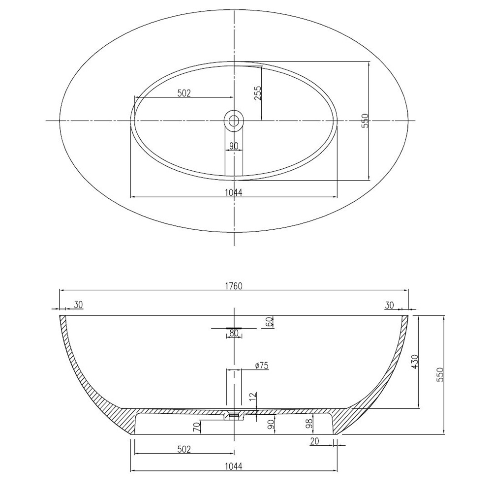 حوض استحمام مثبت على الارض من الحجر الصلب من برنستين ١٧٦(طول) × ١٠٣(عرض) سم - أبيض غير لامع أحواض الاستحمام