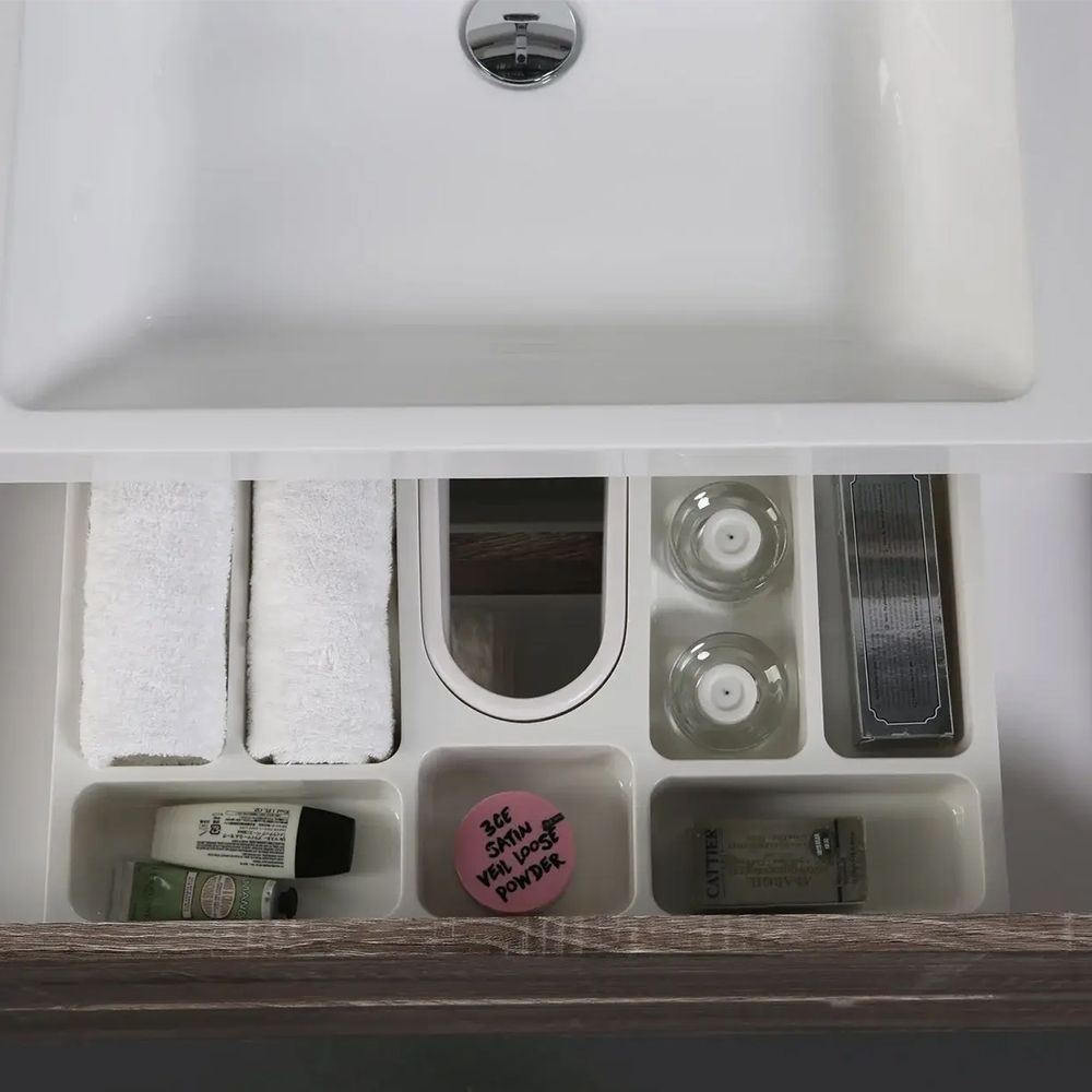 - لون الكروم: يأتي درج الخزانة ومنظم مستحضرات التجميل بلون أبيض غير لامع أنيق يمتزج بسلاسة مع أي موضوع للحمام.