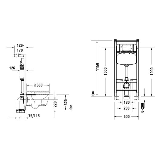 خزان مخفي لكرسي الحمام المعلق على الحائط من ديورافيت ١١٥ سم (ارتفاع) و عمق قابل للتعديل (١٢٫٦-١٧) سم خزان مخفي