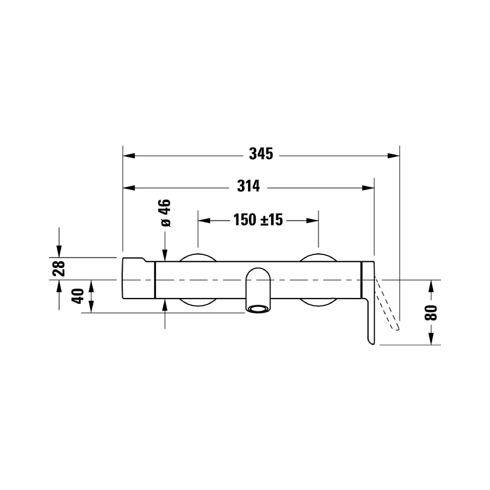 خلاط حوض استحمام/دش من ديورافيت بروز فوهة الخلاط ١٠.٩ سم مع منفذين للماء - أسود مطفي خلاطات الحمام