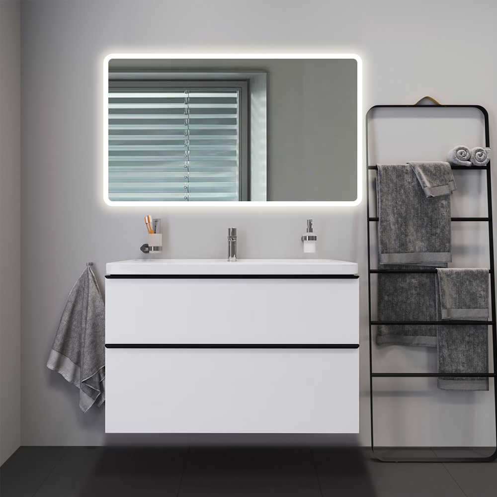 طقم خزانة حمام مع مغسلة من ديورافيت ١٠٠.٥(عرض) × ٤٨(عمق) سم - أبيض غير لامع أثاث الحمام