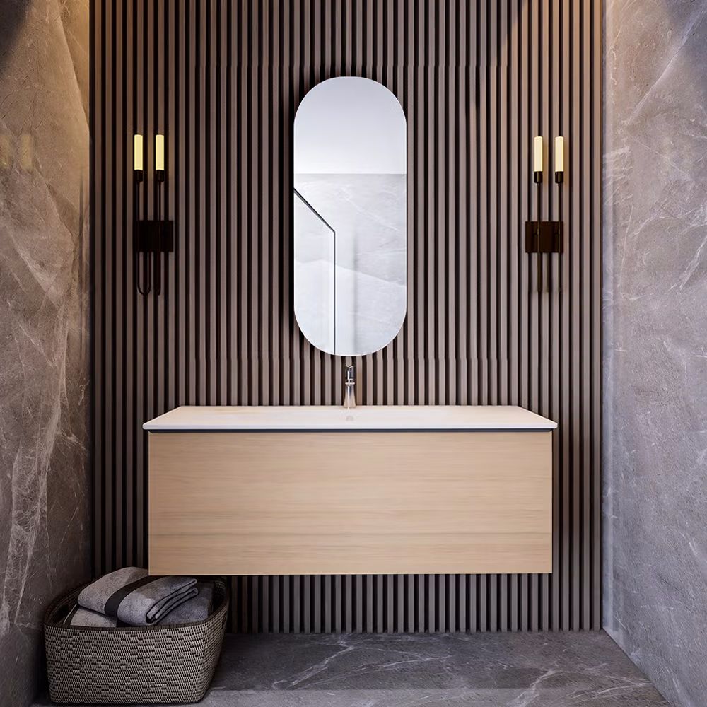 1 x طقم خزانة حمام 123 سم (عرض) بلوط طبيعي مع مغسلة سيراميك من ديورافيت