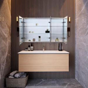 طقم خزانة حمام مع مغسلة من ديورافيت ١٢٣(عرض) × ٤٩(عمق) سم - لون الخشب الطبيعي أثاث الحمام