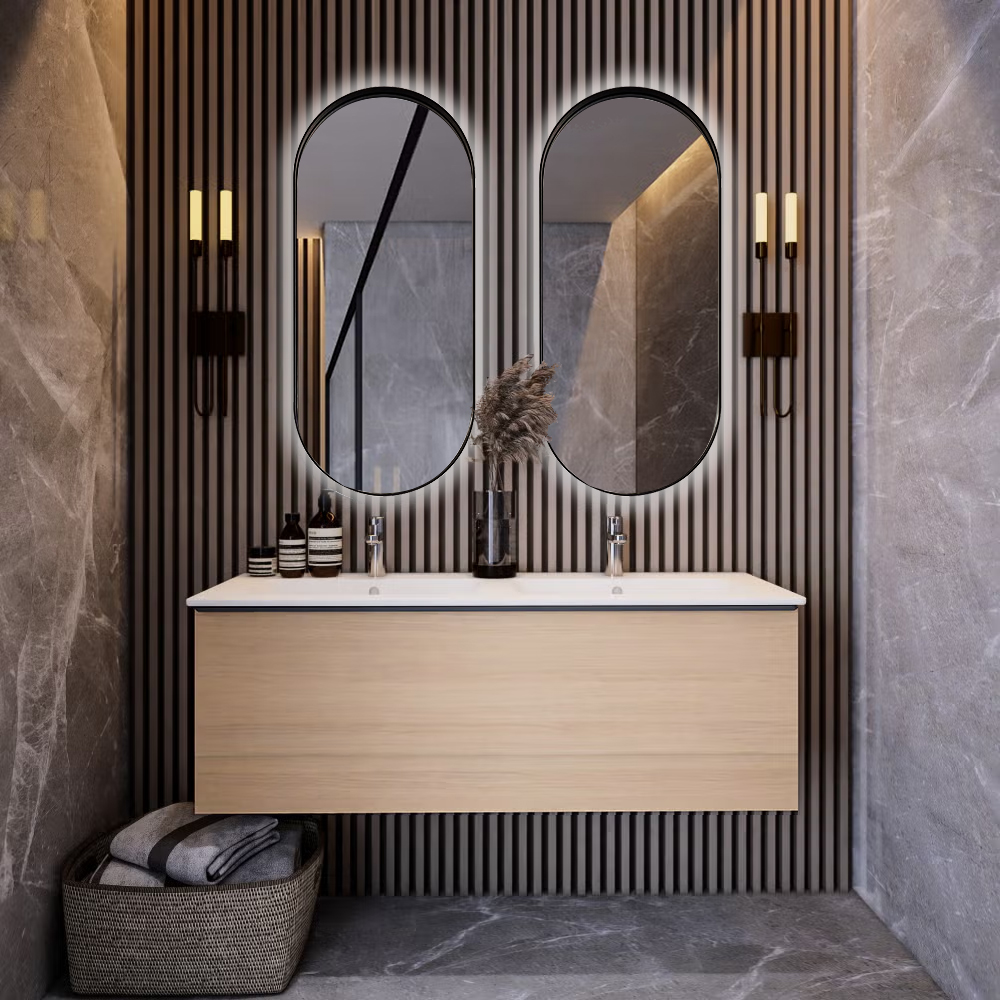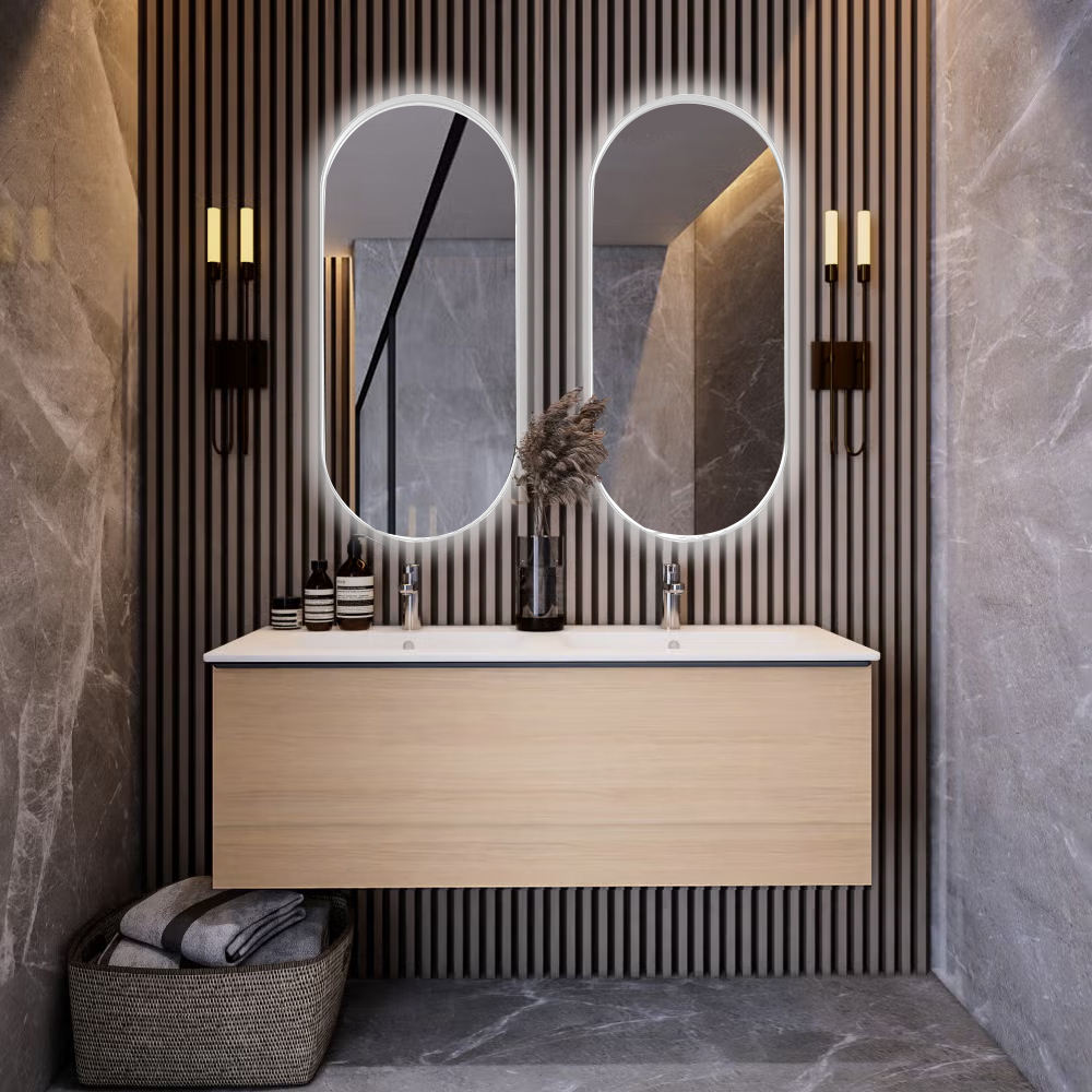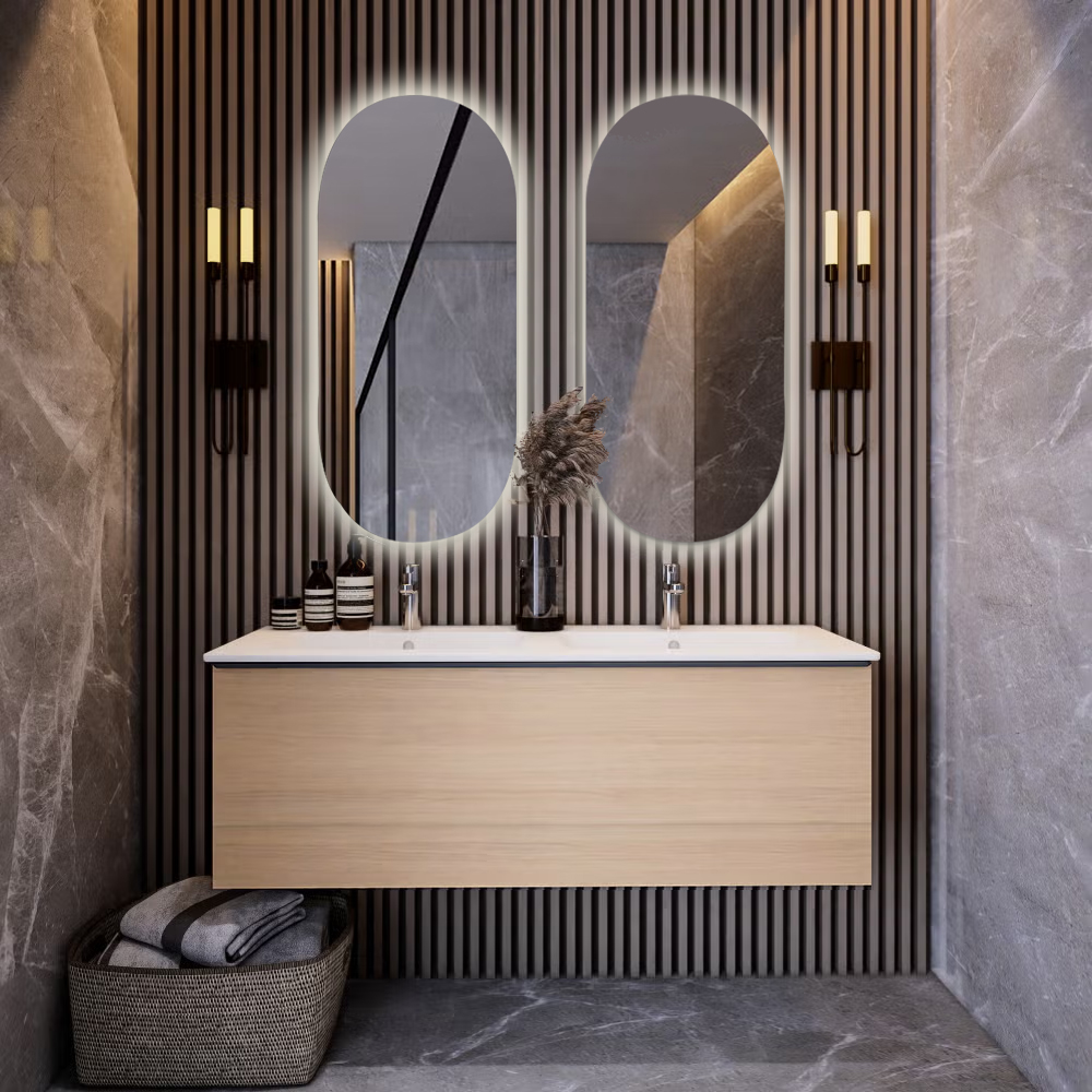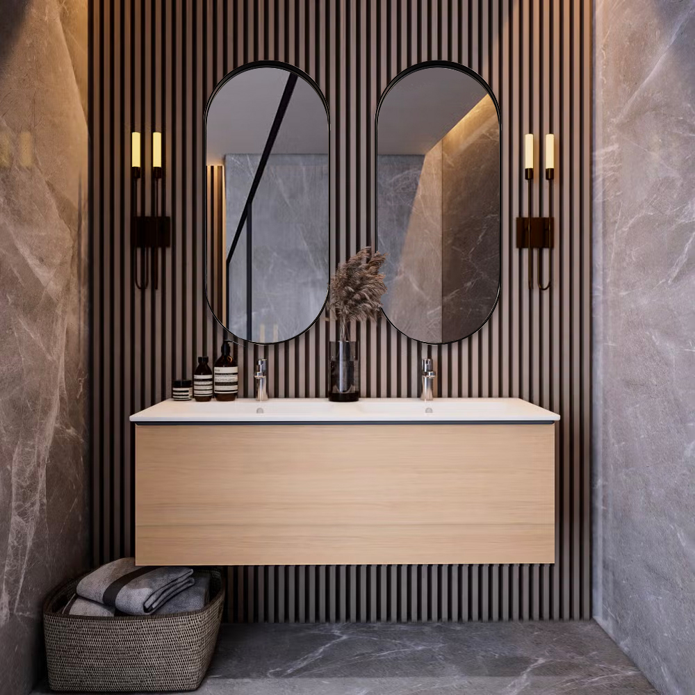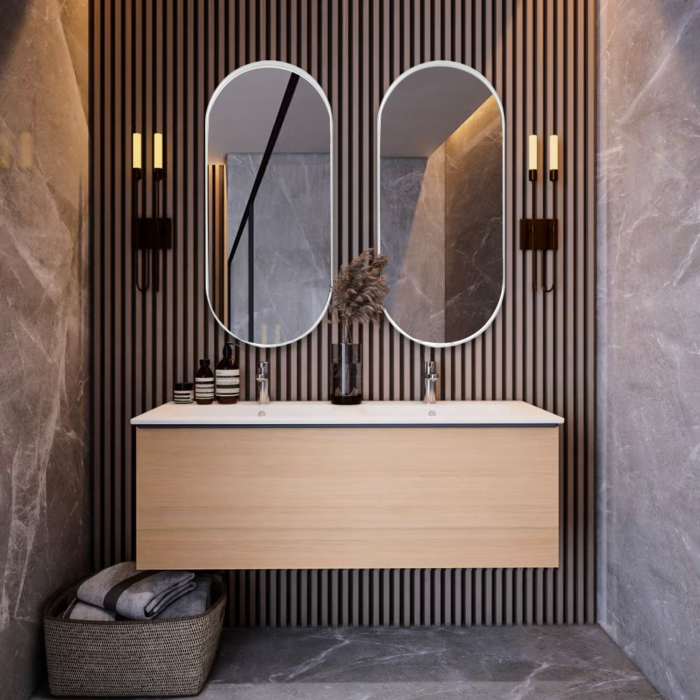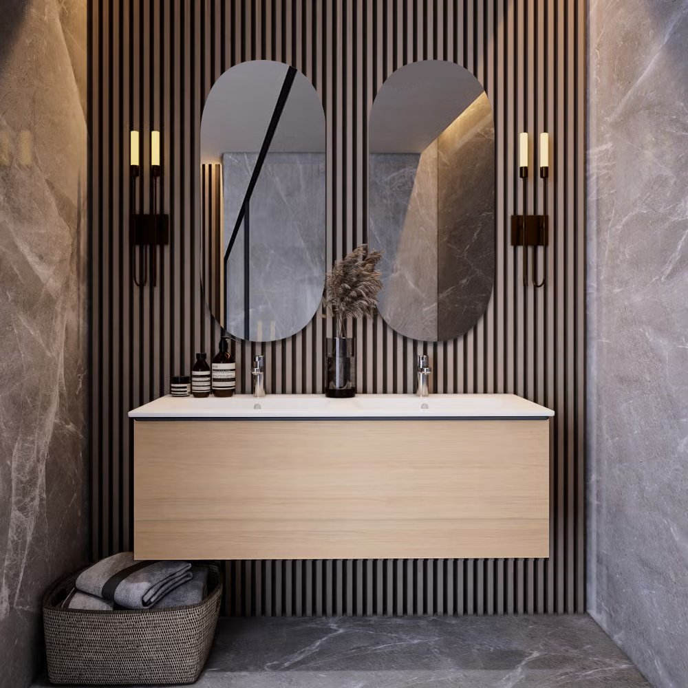 طقم خزانة حمام مع مغسلتين من ديورافيت ١٣٠(عرض) × ٤٩(عمق) سم - لون الخشب الطبيعي أثاث الحمام
