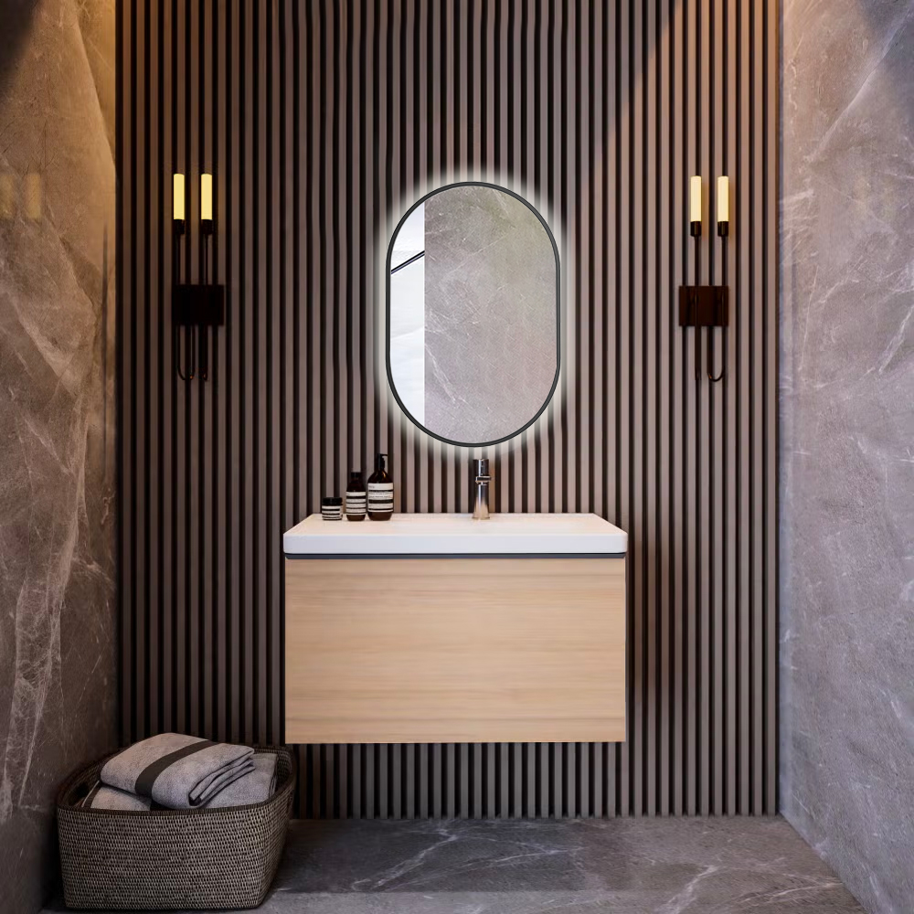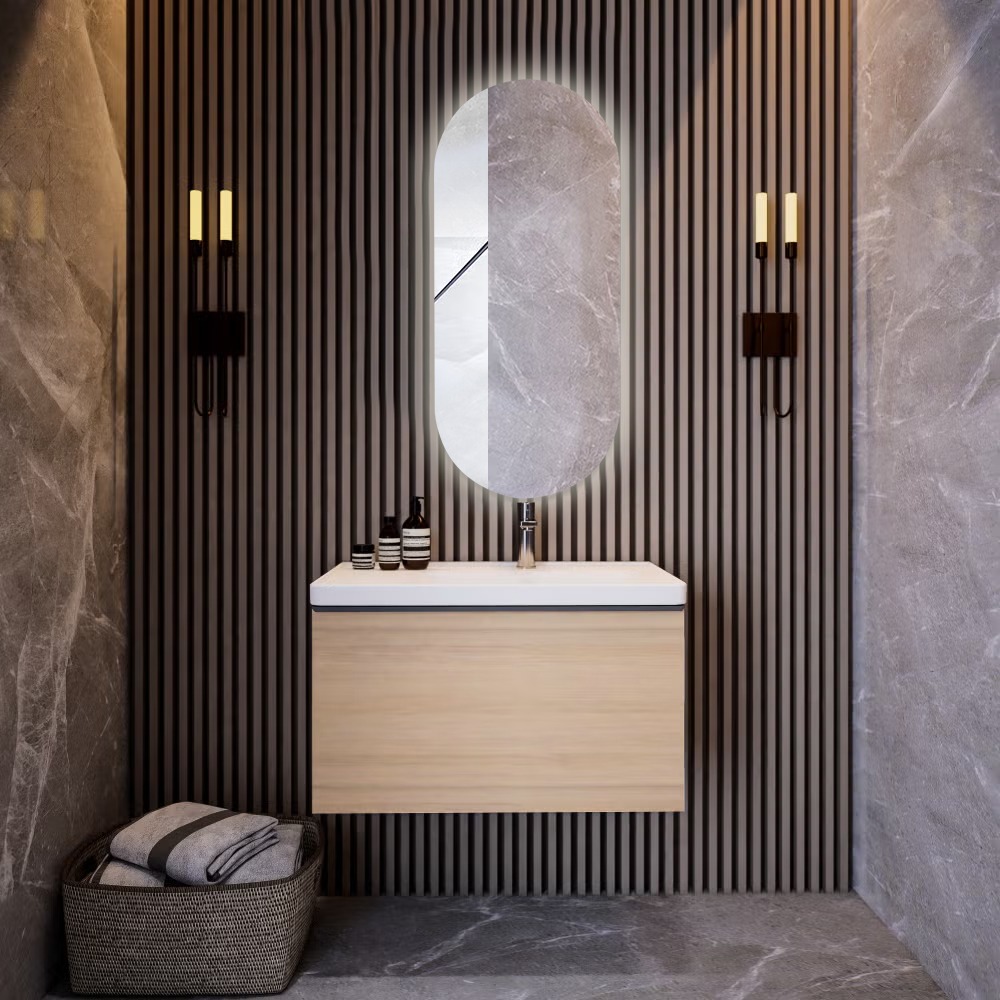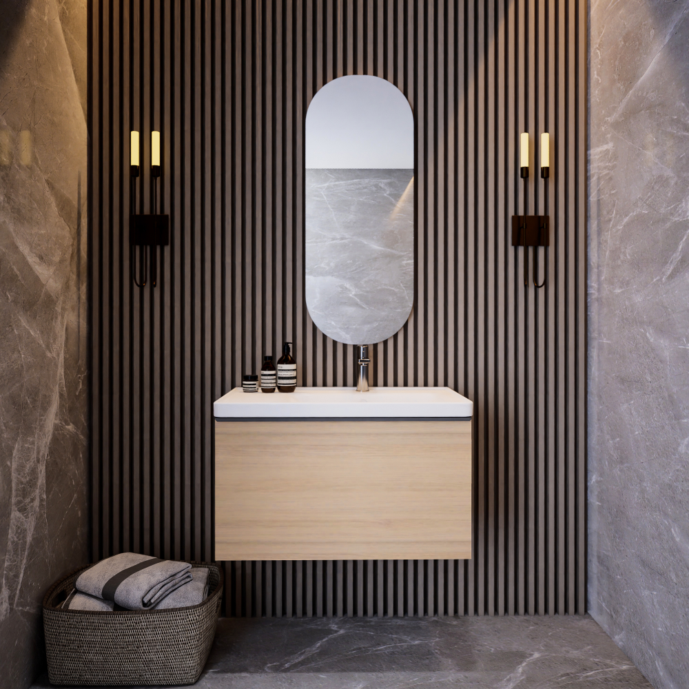 1 x طقم خزانة حمام 80 سم (عرض) بلوط طبيعي مع مغسلة ديورافيت