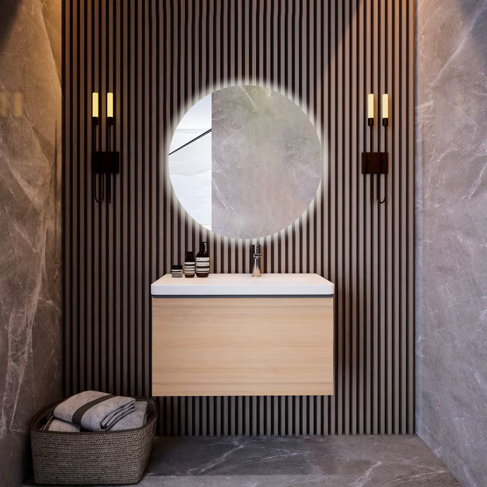 طقم خزانة حمام مع مغسلة من ديورافيت ٨٠(عرض) × ٤٨(عمق) سم - لون الخشب الطبيعي أثاث الحمام