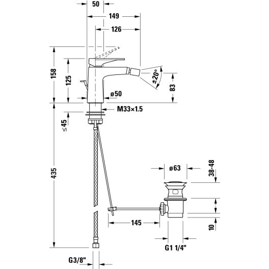 - صُنع صنبور خلاط بيديت ديورافيت تولوم هذا في ألمانيا ، مما يوفر أداءً فعالاً وعالي الجودة لأي تصميم حمام حديث.