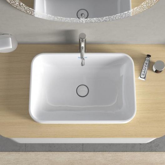 - حوض غسيل فوق الرف من ديورافيت هو حوض فريد من نوعه على شكل مستطيل يوفر نطاقًا جديدًا لتصميم الحمام.