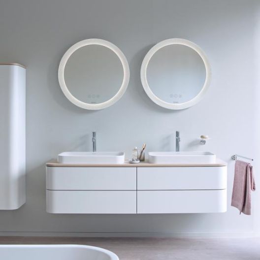 - تقدم السلسلة نفسها من الجانب الأنثوي: حيث يتم تحقيق ذلك بفضل نصف القطر الدقيق للزوايا الدائرية التي تظهر في جميع أنحاء الوحدة - والتي تمنح هابي دي2 تصميمها النموذجي المميز. يجلب تصميم هابي دي2 أناقة جديدة إلى الحمام.