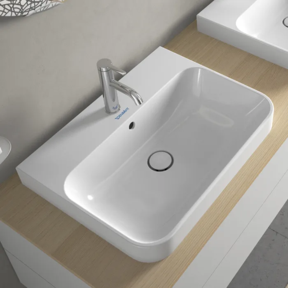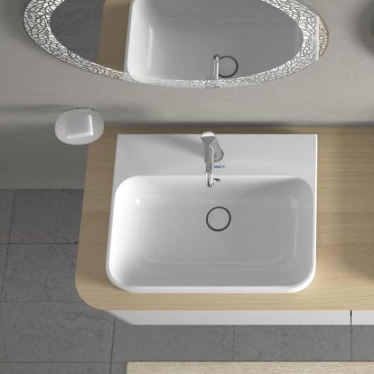 - حوض غسيل فوق الرف من ديورافيت هو حوض فريد من نوعه على شكل مستطيل يوفر نطاقًا جديدًا لتصميم الحمام.