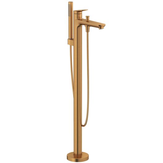 ديورافيت ويف، خلاط حوض الاستحمام القائم بذاته للحمام بلمسة البرونز، تم تصميمه من قبل ديورافيت. يشمل محول الماء، دش يدوي بشكل عصا، خرطوم الدش، الجزء المخفي في الأرض، ومجموعة التثبيت. التركيب الاحترافي الاختياري متاح أيضًا.