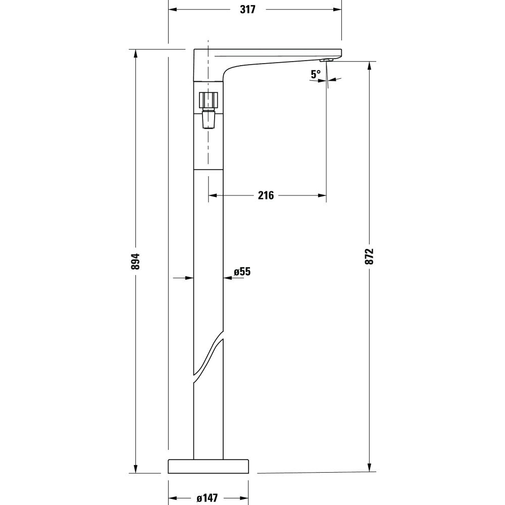 خلاط حوض استحمام مثبت على الارض تصميم ستارك من ديورافيت بروز فوهة الخلاط ٢١.٦ سم وارتفاعه ٨٩.٤ سم - أسود مطفي خلاطات الحمام