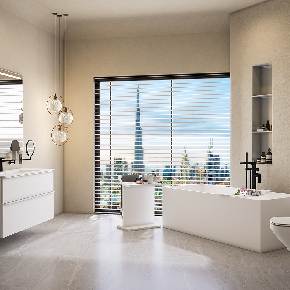 - ارتقِ بتصميم حمامك مع خلاط حوض الاستحمام المثبت على الارض من ديورافيت تولوم