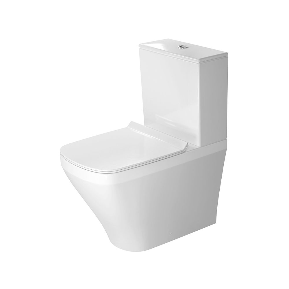 مرحاض ديورافيت ديوراستايل قائم على الأرض بدون إطار باللون الأبيض اللامع ، من تصميم ديورافيت. بما في ذلك خزان سيراميك مزدوج ، وغطاء مقعد يغلق بسلاسة ومجموعة التثبيت. التثبيت متاح عن طريق خبرائنا المعتمدين.
