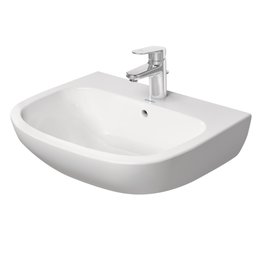 مغسلة معلقة علي الحائط مع سدادة المغسلة من ديورافيت ٥٥(عرض) × ٤٣(عمق) سم - أبيض لامع مغاسل الحمام
