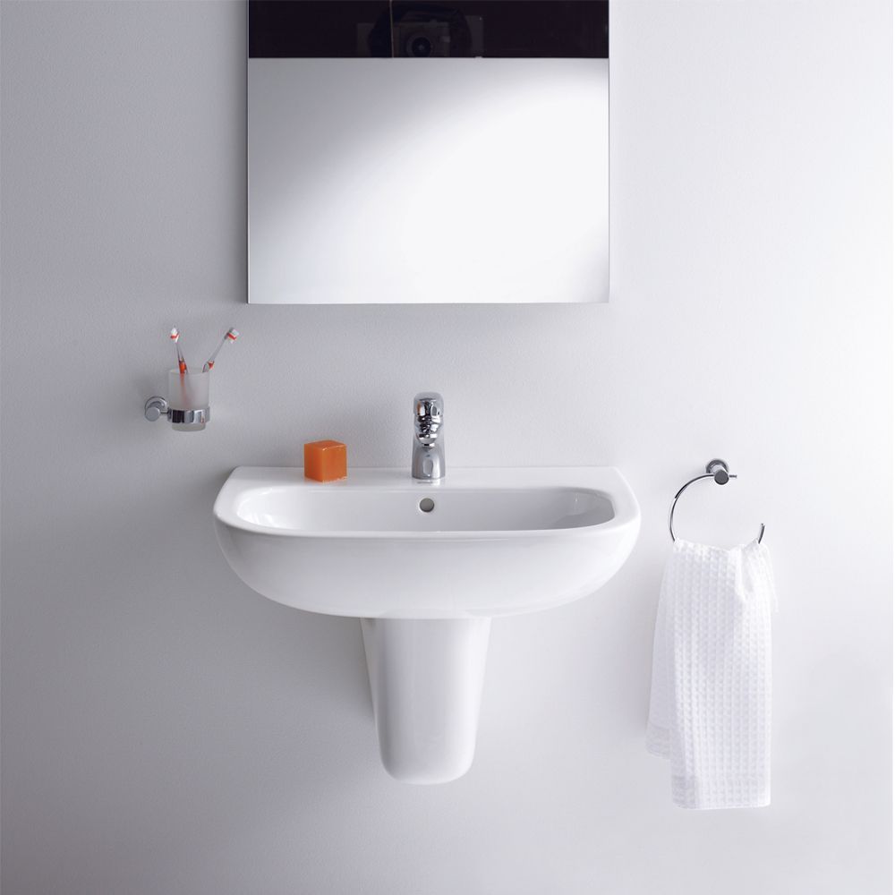 - مغسلة نصف عامود مثبتة على الحائط من ديورافيت هو حوض غسيل فريد بيضاوي الشكل يوفر نطاقًا جديدًا لتصميم الحمام.
