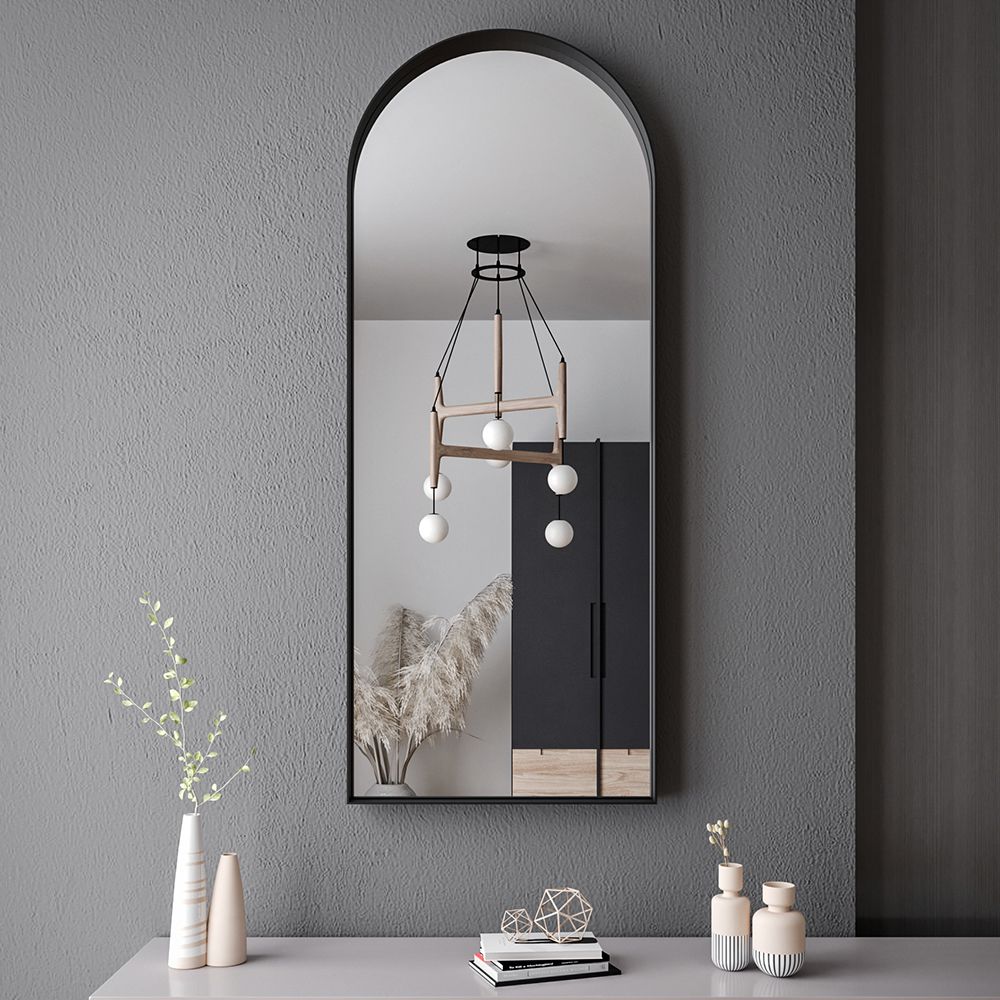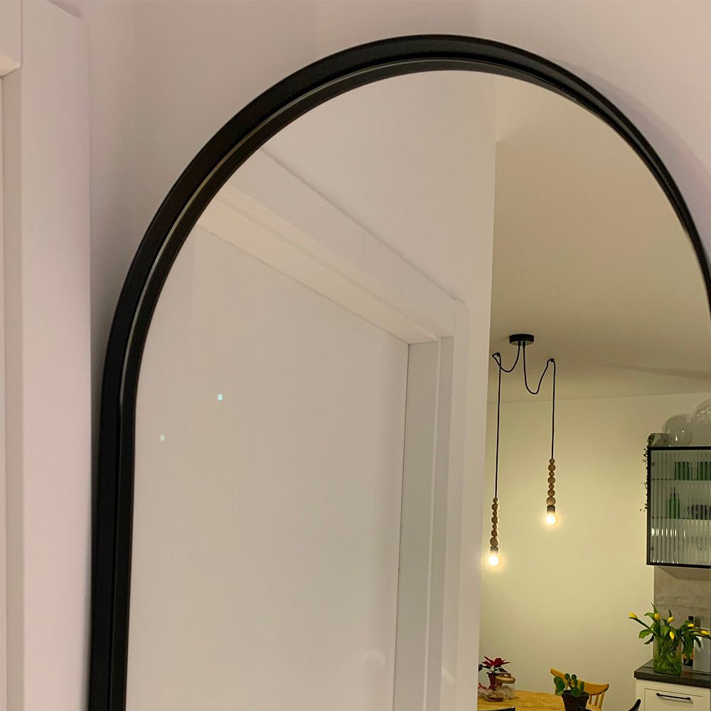 مرآة قوسية مصنوعة يدويًا ٦٠(عرض)×١٥٠(ارتفاع) سم - إطار معدني أسود مرايا المنزل