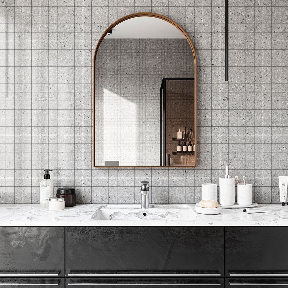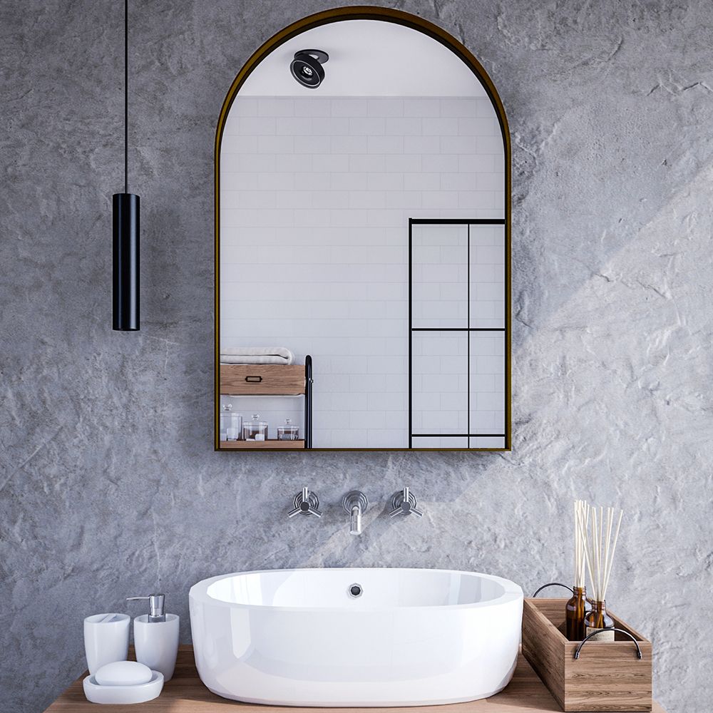 مرآة قوسية مصنعة يدويًا ٦٠x٩٠ سم، إطار معدني برونزي مرايا الحمام
