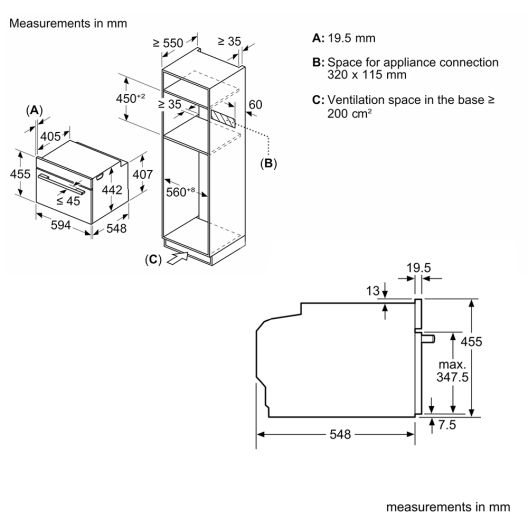 Siemens Built In Compact Oven with Microwave Function 60cm (W) x 45.5cm(H), 45 Liter - Black Ovens