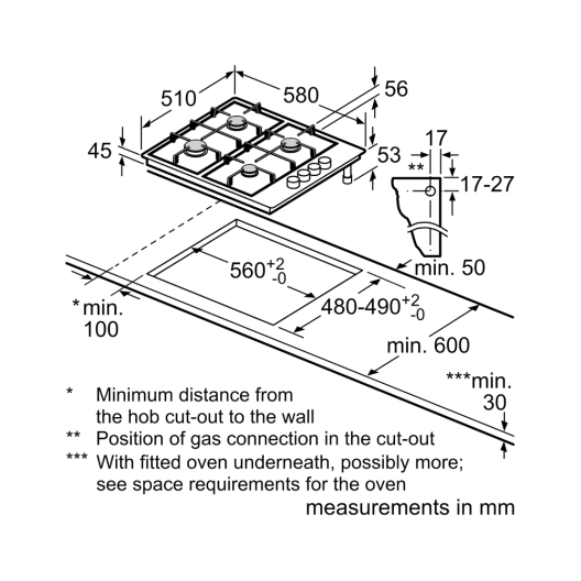 موقد غاز مدمج من سيمنز ، يتميز بمناطق طهي عالية السرعة. سطحه مصنوع من استانلس ستيل ، مقاس 58(عرض) × 51 (عمق) × 4.3 (ارتفاع) سمIQ100 الشحن والتركيب مجانا