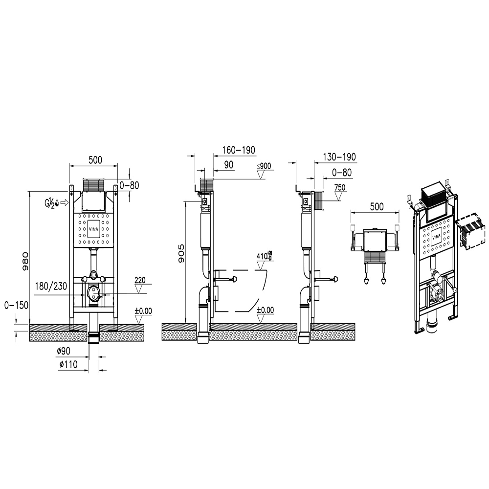 آلية خزان فيترا في8 مخفي بارتفاع 98 سم للكراسي المعلقة على الحائط تشمل دعامات الحائط.