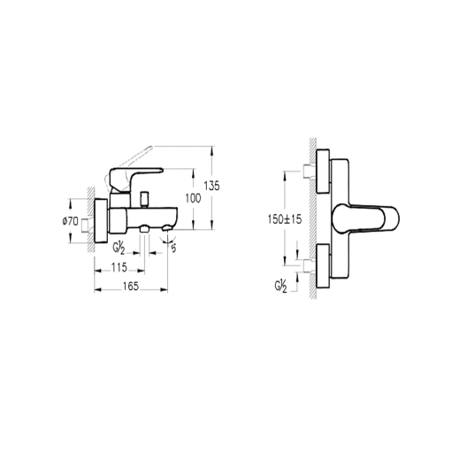 خلاط حوض استحمام/ دش من فيترا مع منفذين للماء - كروم خلاطات الحمام