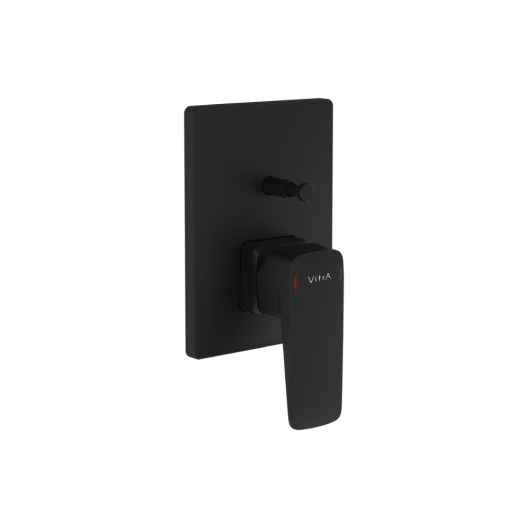 خلاط حوض استحمام ودش مخفي فيترا رووت مربع مع منفذين للمياه بلون أسود غير لامع ، من تصميم فيترا. يتضمن جزء مخفي وعدة تثبيت.
