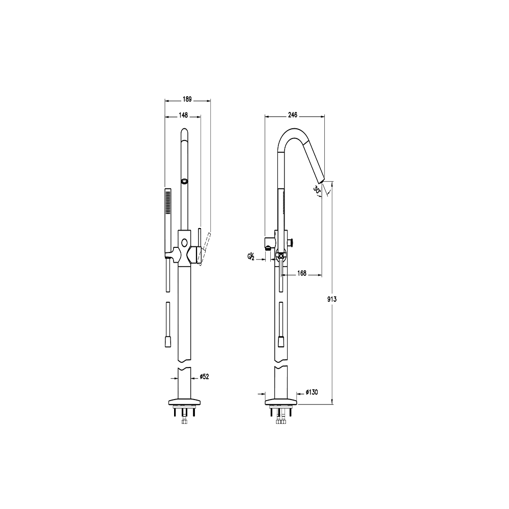 - يشتمل على محول ودش يدوي وخرطوم دش وجزء مخفي على الأرض ومجموعة تثبيت