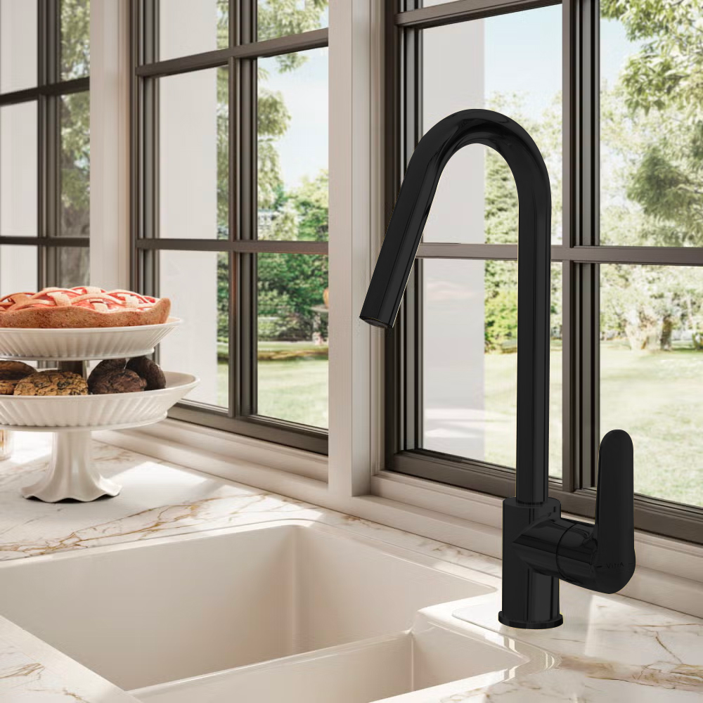 خلاط مطبخ فيترا رووت دائرية بلون أسود غير لامع. يتضمن خراطيم مرنة ومجموعة تثبيت. التركيب متاح عن طريق خبرائنا المعتمدين.