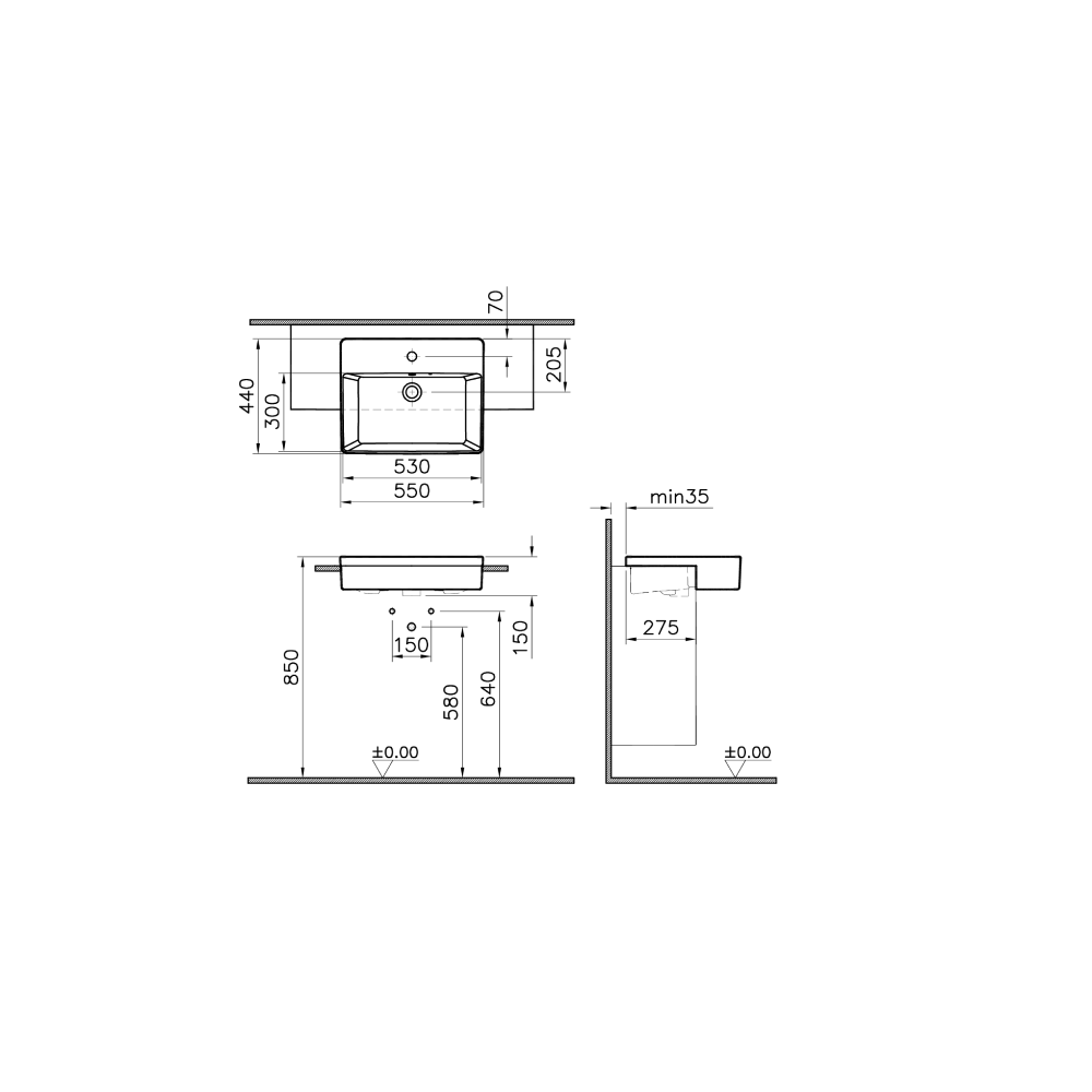 مغسلة شبه الغاطسة من فيترا نو: 55 (عرض) × 44 (عمق) × 15 (ارتفاع) سم. هذه المغسلة الفريدة ذو الشكل المستطيل مصنوعة من السيراميك عالي الجودة باللون الأبيض اللامع. تشمل هراب المغسلة ومجموعة التثبيت.
