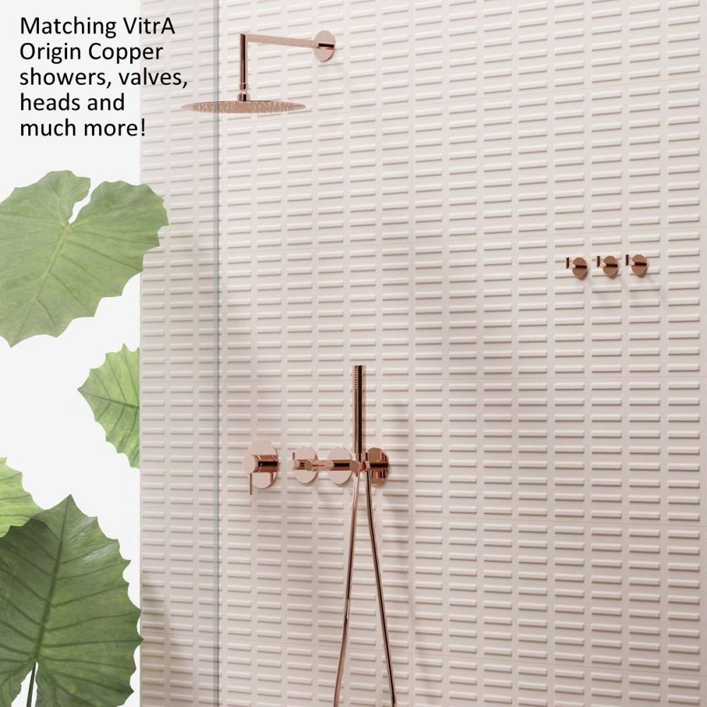 دش مطري دائري فيترا اوريجين مثبت على الحائط 25 سم مصنوع من المعدن بلون نحاسي ، تم إنشاؤه بواسطة ستوديو تصميم فيترا. يشمل ذراع الدش المثبت على الحائط. التثبيت الخبير الاختياري متاح.