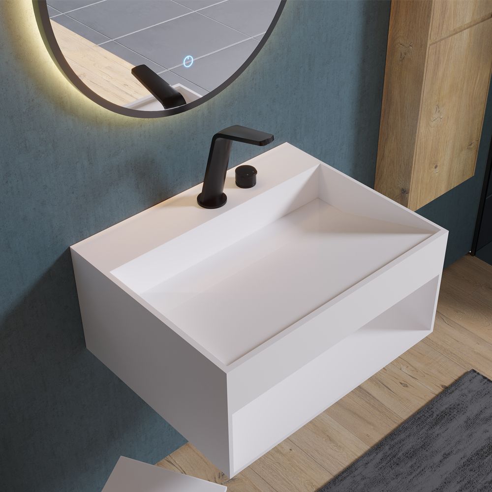 1 x Bernstein TWG71 Solid Stone Washbasin with Storage Space Size: 60(W) x 46(D) x 28(H) cm - Matt White