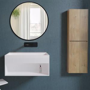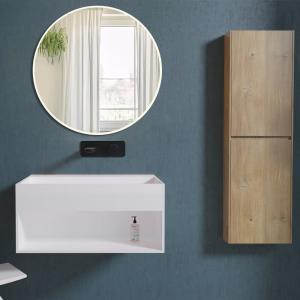 Bernstein full set wall mounted bathroom vanity includes solid stone wash basin with storage 60(W) x 46(D) cm, basin siphon and fixing kit included. Optional expert installation is available.