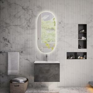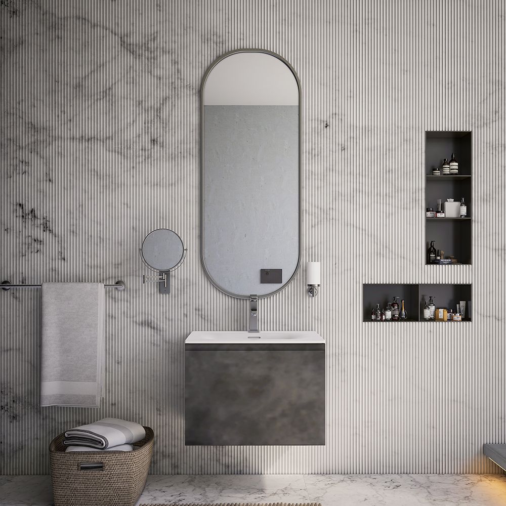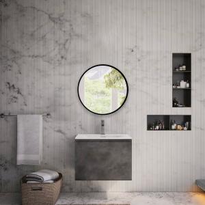 Bernstein full set wall mounted bathroom vanity includes waterproof cabinet in concrete grey matt and a glossy white cast marble wash basin both 60(W) x 48(D) cm, basin siphon and fixing kit included. Optional expert installation is available.