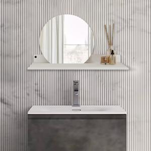 - The pre-assembled bathroom vanity unit is available in white gloss, oak structure or grey with a soft matt finish