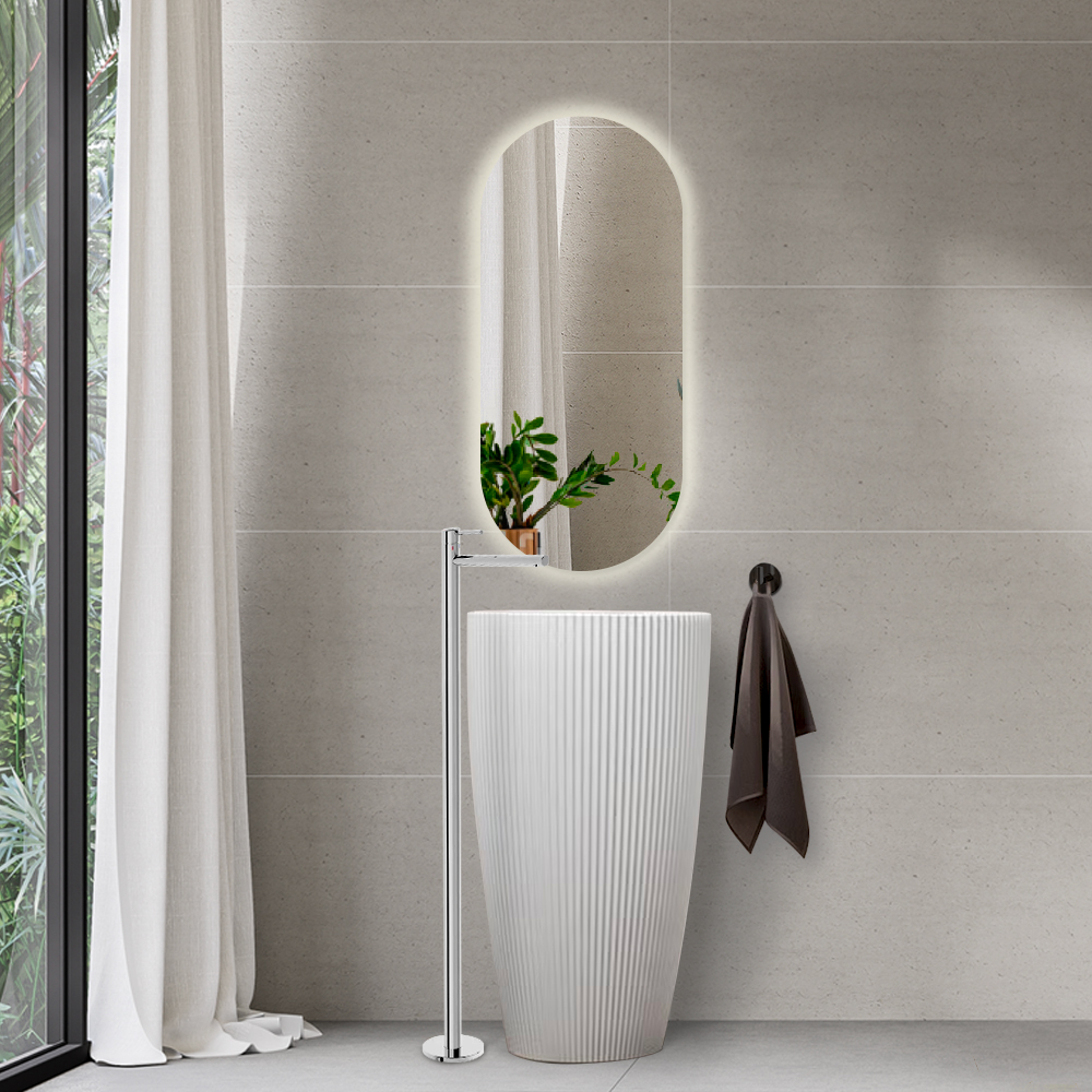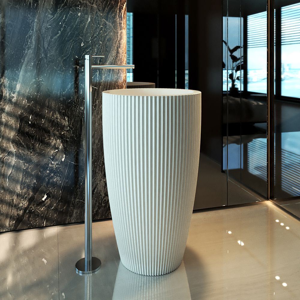 - This floor standing conic-shaped washbasin is simple and elegant.