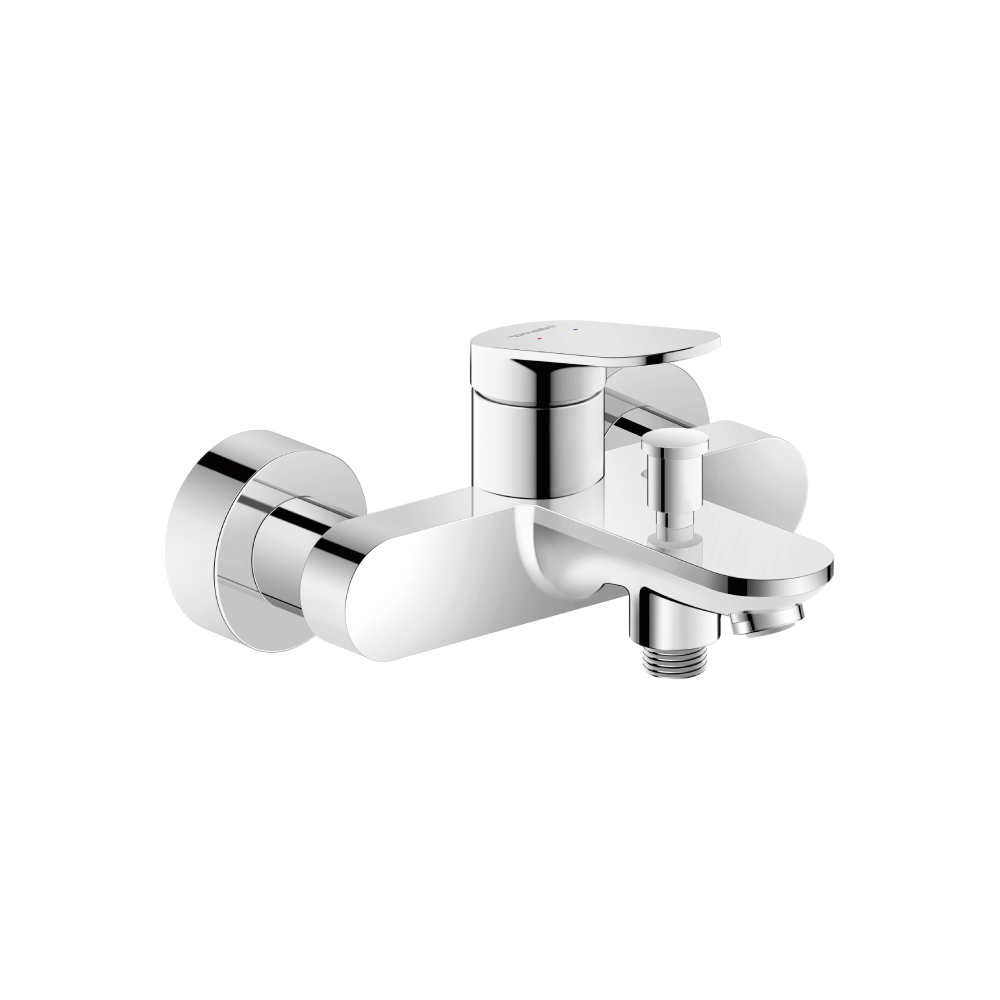 Duravit Wave single lever bath and shower mixer, designed by Duravit, features a chrome finish and two water outlets. ncludes fixing kit. Optional expert installation is available.